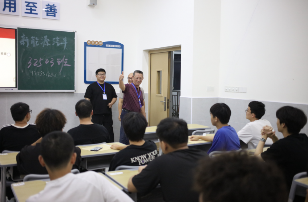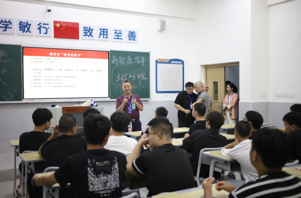 督查过程中,张校长一行先后走进每个二级学院的班会现场。每到一处,他都仔细观察班会组织情况,认真倾听班主任的讲解与新生的互动交流,并在班会间隙与新生亲切交谈,询问他们的入学适应情况、住宿饮食是否习惯以及对大学生活的期待。在智能工程学院,当看到新生们围绕“智能制造”展开热烈讨论时,张校长走上讲台,结合我国制造业转型升级的时代背景,动情寄语:“中国智造正在从跟跑者跨入引跑者行列,需要一大批有理想、有技术的年轻人去开创,我们一起加油!”简洁有力的话语直击人心,瞬间点燃现场氛围,赢得全体新生阵阵掌声。在汽车工程学院,张校长与同学们中说:“新能源汽车是中国制造的响亮名片,未来你们将成为这一领域的一员,一定要重点关注这些领域的技术突破,提前储备相关知识,未来才能在行业中脱颖而出。在健康管理学院,张校长与同学们聊起预防医学、临床医学和康复医学的学科关联与发展前景:“预防医学是‘治未病’,临床医学是‘治已病’,康复医学是‘助康复’。你们作为医学领域的未来职业人,一定大家要找准专业发展方向,为健康中国建设贡献力量。”